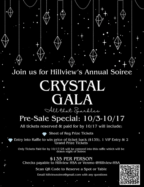 The Hillview HSA is excited to open ticket sales for our 5th Annual Soiree, Crystal Gala.